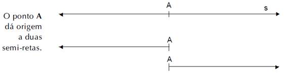 Tomando um ponto qualquer de uma reta, dividimos a reta em duas partes, chamadas semi-retas. A semi-reta sempre tem um ponto de origem, mas não tem fim.