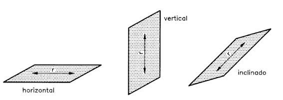 não é horizontal nem vertical, o plano é inclinado. Veja as posições da reta e