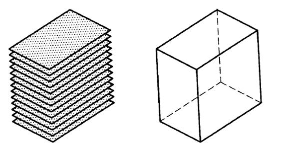 O prisma é um sólido geométrico limitado por polígonos. Você pode imaginá-lo como uma pilha de polígonos iguais muito próximos uns dos outros, como mostra a ilustração: