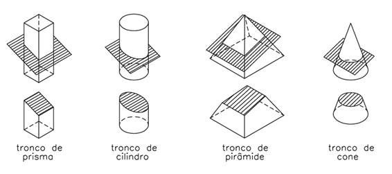geométricas: os sólidos geométricos truncados. Veja alguns exemplos de sólidos truncados, com seus respectivos nomes: