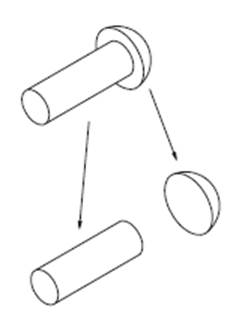 Imaginando o rebite decomposto em partes mais simples, você verá que ele é formado por um cilindro e uma calota esférica (esfera truncada).