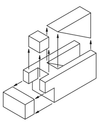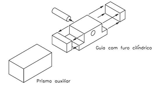 Observe, na ilustração abaixo, como a retirada de formas geométricas de um modelo simples (bloco prismático) da origem a outra forma mais complexa.