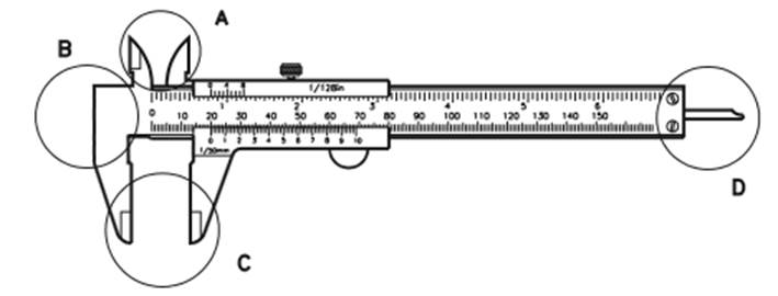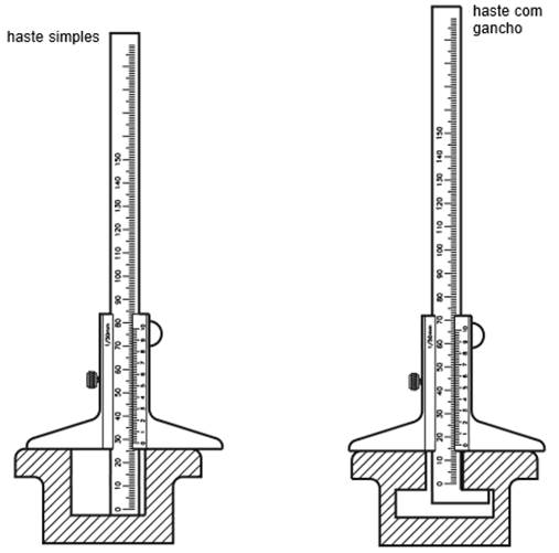 coloca-se a parte do paquímetro apropriada para ressaltos perpendicularmente à