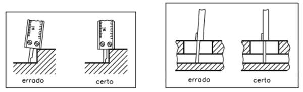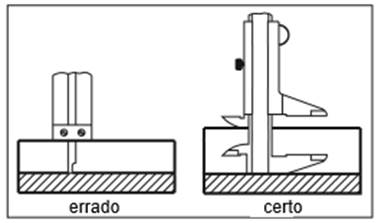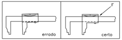 paquímetro corretamente sobre a peça, evitando que ele fique inclinado.