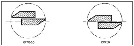 instrumento em posição não perpendicular à vista e estando sobrepostos os